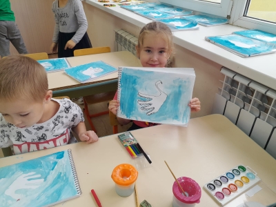 Рисование "Лебедь белая плывет"