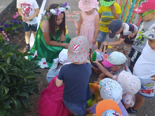 Воспитанникам нашего детского сада, нынешнее лето подарило немало ярких впечатлений, а значит хмурой осенью морозной зимой будет что вспомнить.Сегодня все ребята собрались, чтобы сказать любимому лету: «Прощай! Прощай до следующего года!». А лето красное не спешило прощаться с малышами, продолжало веселиться. Спели вместе песни, играли в веселые подвижные игры: «Солнышко и дождик», «Лавата». Игра «Кто скорее соберет цветы?» очень увлекла детей, где они проявили себя в роли цветоводов. А старшие дошкольники перенеслись в гости к Лету с помощью волшебных загадок, и оказались то на сказочной полянке, то на спортивной площадке, то на летней площадке. На сказочной поляне дети веселились с Дачной феей на спортивной площадке тренировались со Спортиком; а на летней площадке оказались в объятиях Лета. Все сказочные персонажи совместно с детьми танцевали «Зверобику», «Танец маленьких утят», пели песню «Вот оно какое наше лето!», выполняли композицию «Эй, лежебоки, ну-ка вставайте!», соревновались в играх-эстафетах. Славно все повеселились, очень крепко подружились, поплясали, поиграли, все вокруг друзьями стали. Что поделать? Но, однако, настала пора прощаться. «До свидания, лето!