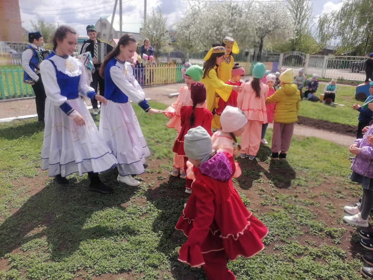 В нашем детском саду уже стало многолетней традицией проведение фольклорного праздника «Сабантуй». В программу праздника были включены инсценировка татарской сказки «Шурале», Ребята соревновались в силе, ловкости и выносливости, поиграли в игры соревновательного характера: «Бой подушками», «Конные скачки», «Кто быстрей донесёт воду в ведрах», «Юрта».. Особенно весело прошел бой с подушками. В празднике приняли участие все воспитанники нашего детского сада. Ребята пели песни и танцевали под весёлую татарскую музыку. У участников Сабантуя надолго останутся незабываемые впечатления об этом красивом национальном празднике.