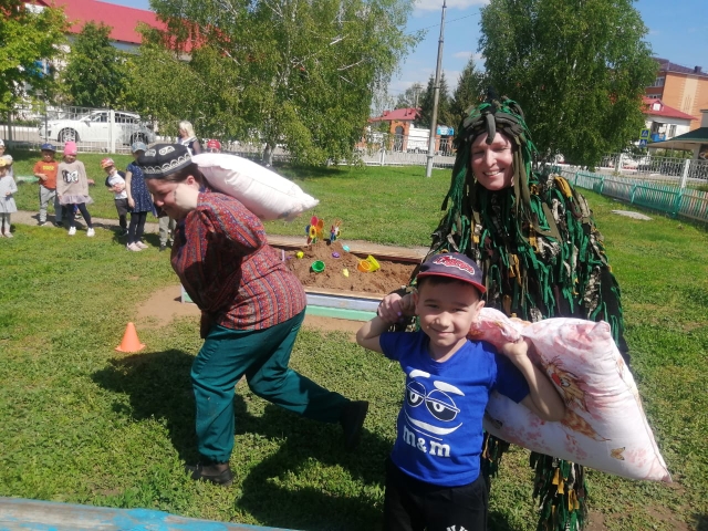 Сегодня воспитанники нашего детского сада участвовали в фольклорном празднике "Малый Сабантуй, который был организован педагогами СОШ № 2 , он был ярким, красочным, интересным и познавательным. Ребята показали свою ловкость и умения в национальных играх «Эй, дружок, сбей горшок», «Бег с ведрами», «Перенеси яйцо в ложке», «Перетяни канат». Самым сложным для ребят, оказалось, попасть по горшку с закрытыми глазами, но и с этим испытанием они справились! А затем вместе с хозяевами праздника водили хоровод и танцевали под национальную музыку.