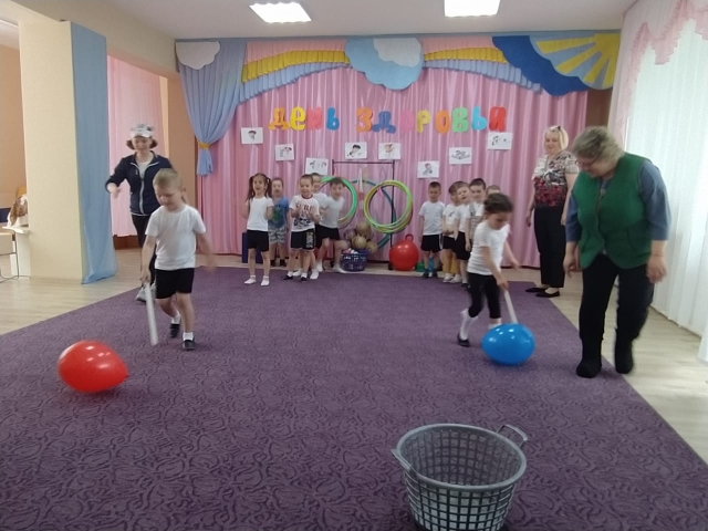 Сегодня в нашем детском саду прошло развлечение "День здоровья". Ребята с большим удовольствием участвовали в досугах, развлечениях, эстафетах, которые были запланированы и организованы творческим коллективом педагогов ДОУ. Под веселую музыку дети выполняли разминку, от персонажей узнали что, "Витамины-защитники организма". По итогам соревнований победила дружба. Ведь наш детский сад – это одна большая, дружная семья, а в семье не бывает проигравших. Да и главное не победа, а участие. Проведенное мероприятие доставило удовольствие и ребятам, и педагогам.