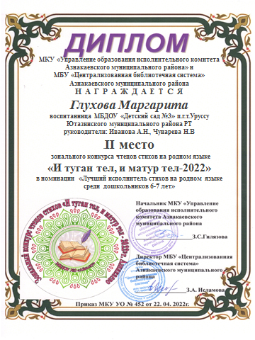 | Короткое название: | МБДОУ "Детский сад №3" п.г.т. Уруссу Ютазинского муниципального района РТ |