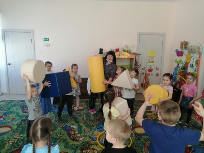 Сегодня ещё один день недели математики воспитанники младших групп начали с интеллектуальных загадок "Волшебный счёт ", "Родились у нас котята... ". А ребята двух старших и подготовительной групп подбирали форму и цвет объекта по образцу, развивали сенсорное восприятие в лаборатории Всезнамуса, строили "Дом для фигур". Воспитанники средней группы играли в подвижную игру "Найди свой дом", где также закрепляли названия геометрических фигур.