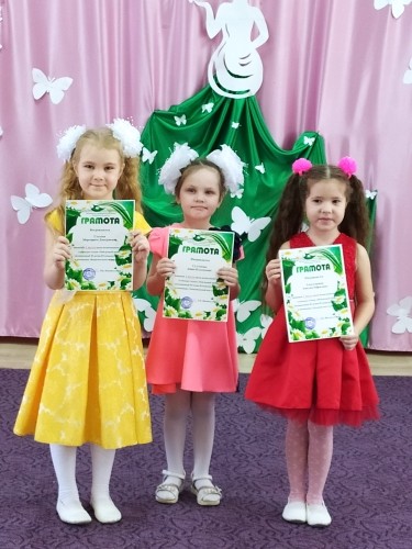 Победительницы конкурса "Мой родной край" среди воспитанников детского сада.