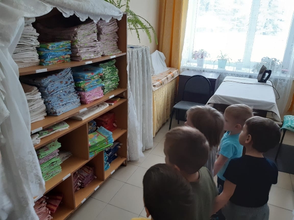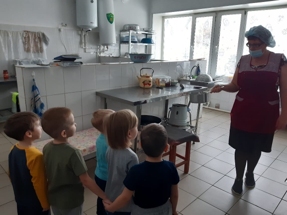В нашем детском саду работают люди разных профессий. Воспитанники средней группы (воспитатель Мухамадиева А.Р.) побывали на кухне нашего детского сада, где познакомились с работой повара. Придя на кухню детского сада, дети с интересом рассмотрели ее и выяснили, что она больше, чем у них дома, но здесь чисто и уютно. Наши повара готовят много разной вкусной и разнообразной еды, а в группу еду детям приносит младший воспитатель. Работа у них тяжелая, потому что детей в детском саду очень много. Поварам приходится поднимать тяжелые большие кастрюли. Чистить много овощей. Там мы увидели интересную мясорубку, большую печку, холодильник. Оказывается, профессия повара нужна, потому что, когда ребята кушают, они растут. Затем воспитанники посетили прачечную, они увидели как стирают белье, в стиральной машине для всех детей детского сада, где его сушат и гладят. Спасибо нашим прачкам за то, что полотенца и постельное белье, чистые и выглажены!