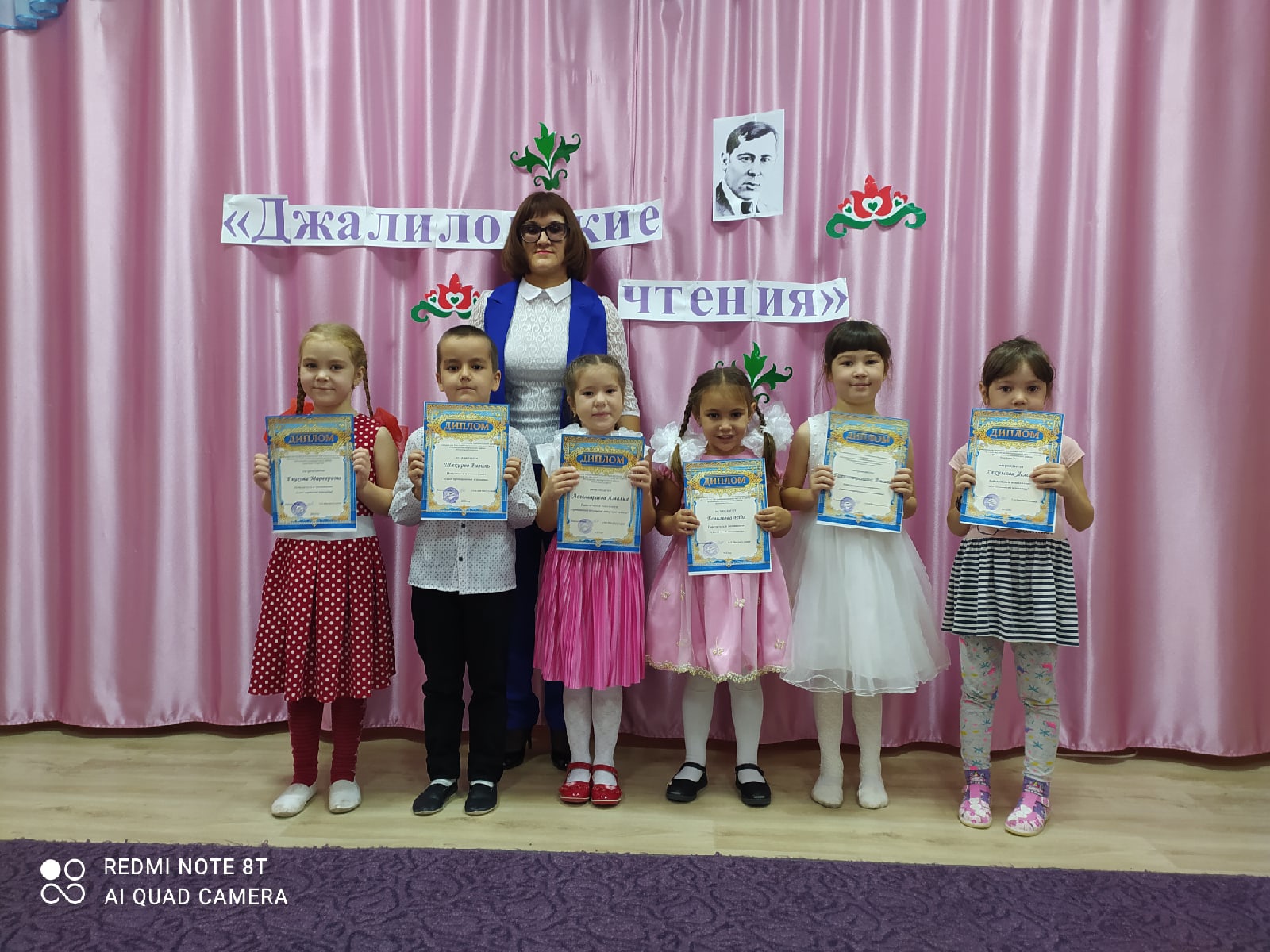 2021 год ознаменован 115-ой годовщиной со дня рождения татарского поэта, Героя Советского Союза Мусы Джалиля. Сегодня в нашем детском саду прошёл конкурс чтецов среди воспитанников подготовительной к школе группы (воспитатель по обучению детей татарскому языку Иванова А. Н.) "Джалиловские чтения" Цель конкурса: формирование интереса к художественному слову, умения чувствовать красоту и выразительность поэтического слова; популяризация творческого наследия М. Джалиля.