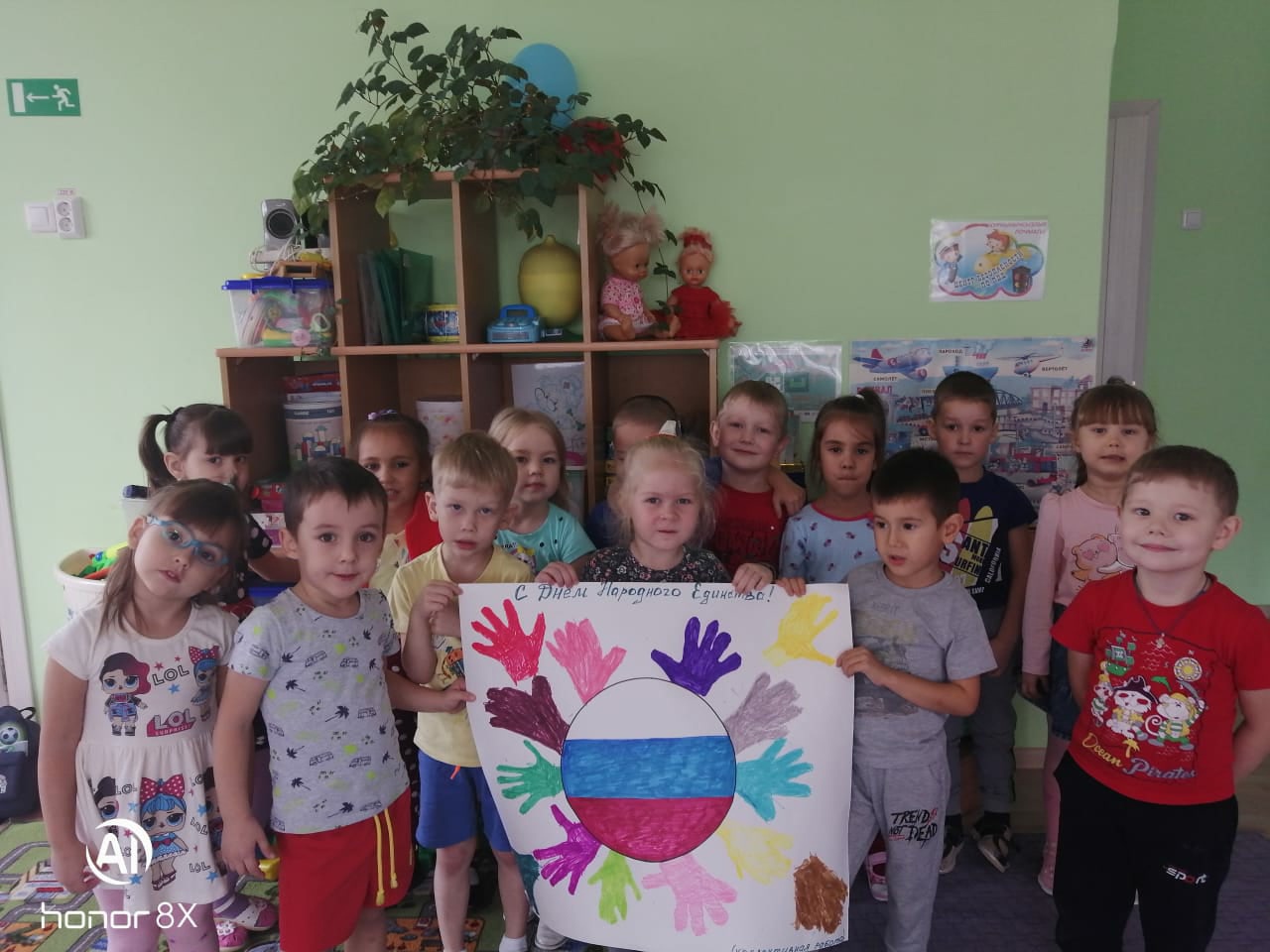 В предверрии праздника Дня народного единства в старшей группе (воспитатель Маркелова Т.Н.) была проведена беседа на тему "Я, ты, он, она - мы единая страна!"