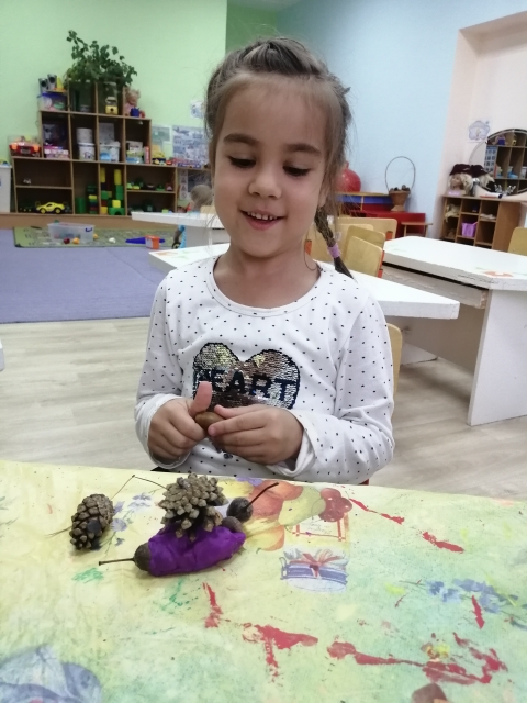 Поделки из природного материала и пластилина. Развиваем мелкую моторику, воображение.
