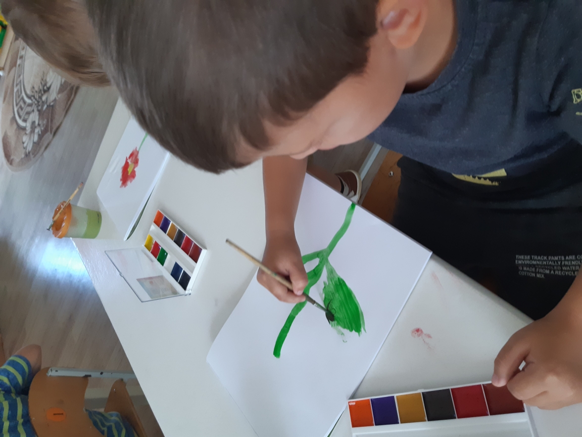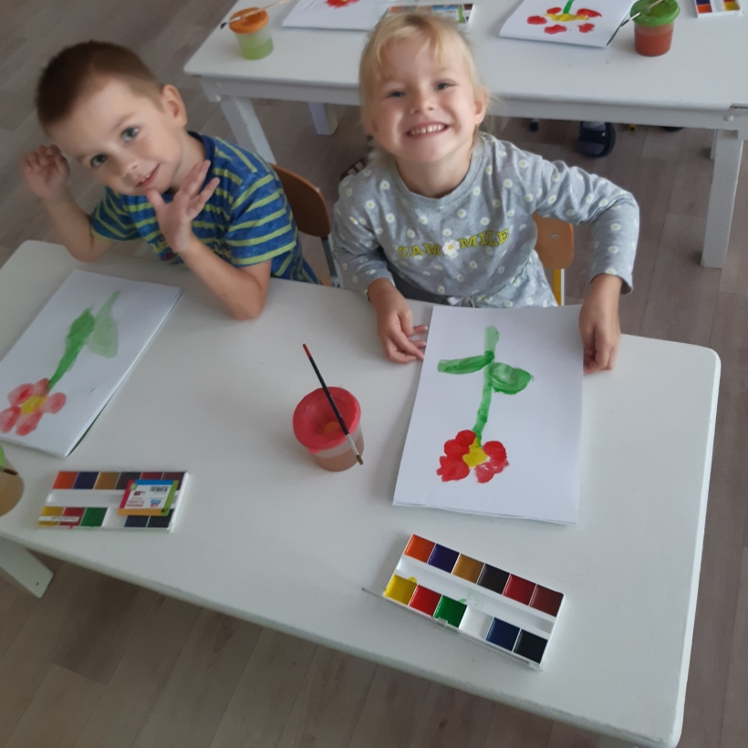 " Красивые цветы " Цель- учить передавать в рисунке части растения. Вызывать чувство удовольствия, радости от созданного изображения.
