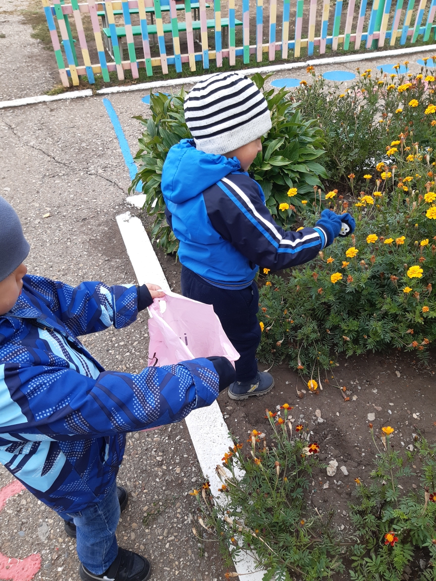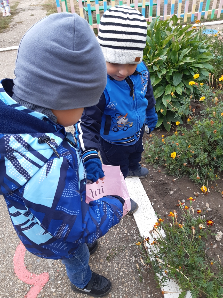 Как это ни печально, но с наступлением осени природа увядает. Дети средней группы «Сказка» продолжают наблюдения за растениями цветника и в это время года. Сегодня во время прогулки воспитатель Айгуль Рустамовна познакомила детей с правилами сбора и хранения семян, Во время сбора семян воспитатель учила отличать зрелые семена от незрелых.
