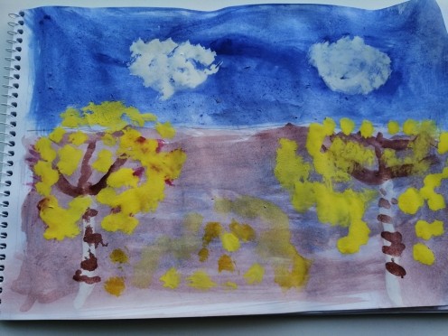 Аппликация с элементами рисования в старшей группе, по теме "Осенняя берёзка"