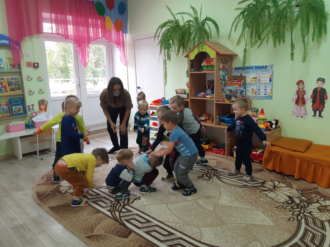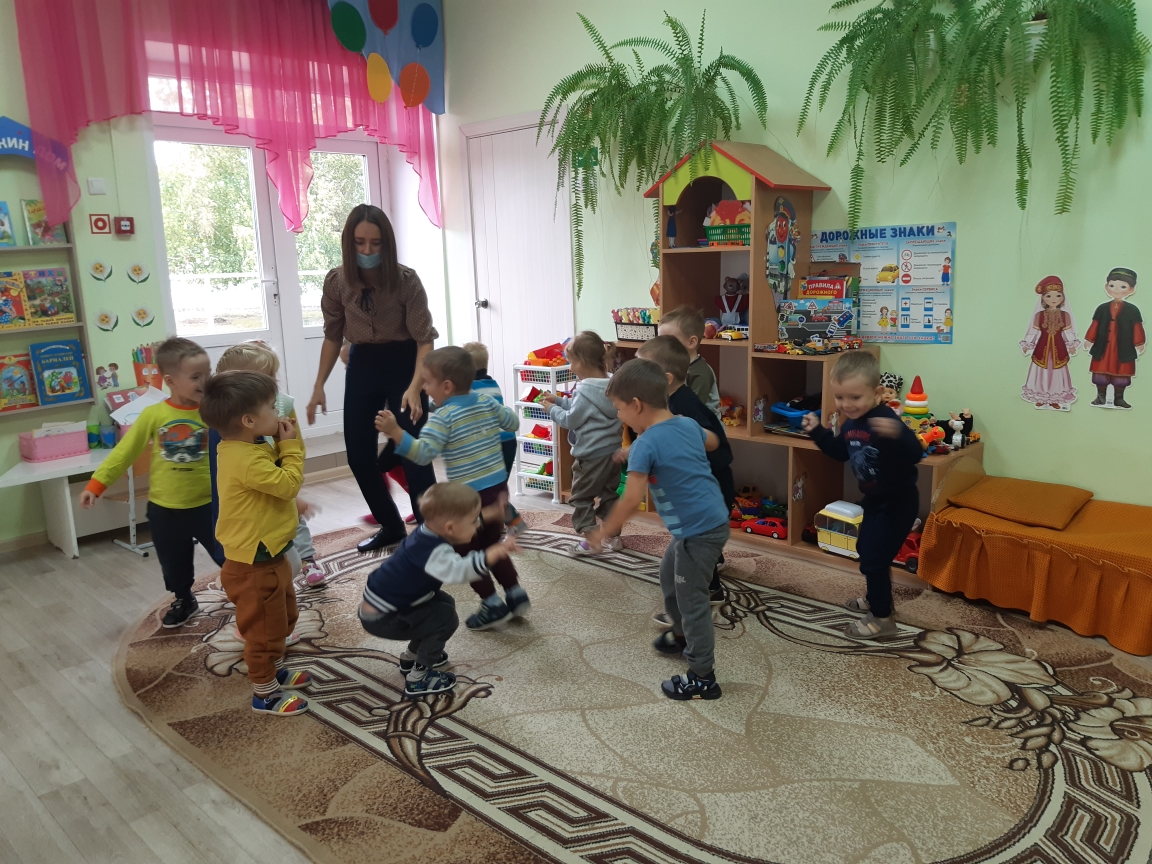Воспитанники учатся ориентироваться в простанстве, действовать по сигналу воспитателя.