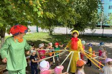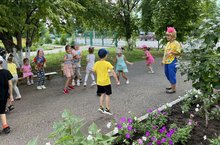 Игры и развлечения на свежем воздухе - приятное времяпровождение. Они благоприятно влияют на физическое и умственное развитие детей. Сегодня в МБДОУ «Детский сад №4» воспитанники средней и старшей группы приняли участие в летнем развлечении «Сюрприз от клоуна Кирюши», которое проходило на участке детского сада. Вместе с клоуном дети выполняли различные задания, танцевали с мячом, играли в догонялки, танцевали ритмические, подвижные танцы, играли в познавательную игру «Разбери овощи и фрукты» .
