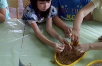 Мягкую, вязкую глину возьмём.Шлёпнем-пошлёпнем, чтоб стала послушной...Лепим-прилепим, месим и мнём –Вот показались гномика ушки. -