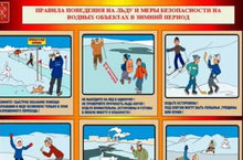 Правила безопасного поведения на воде в период ледостава Ледостав – это время, когда пруды, реки, озера покрываются льдом. Чаще всего люди оказываются на льду, когда переходят водоемы, чтобы сократить свой путь, или отправляются на зимнюю рыбалку. Любое пребывание на льду всегда таит опасность. Поэтому необходимо строго соблюдать меры безопасности на льду. Помните, что безопасный переход по льду возможен при его толщине не менее 7 см, причем люди должны идти на расстоянии 5 – 6 м друг от друга. Такую же дистанцию надо соблюдать при встречном движении. Если же собралась группа из 4 – 5 человек, то передвигаться можно по льду, толщина которого не меньше 15 см. Безопаснее всего переправляться через водоем по прозрачному льду, когда он имеет зеленоватый или синеватый оттенок. Во время движения по льду следует обходить опасные места и участки, покрытые толстым слоем снега. Особую осторожность нужно проявлять в тех местах, где быстрое течение, под мостами, в местах, где вмерзли кусты, камыши и какие-нибудь посторонние предметы, т.к. возрастает опасность провалиться. Необходимо обходить участки водоемов, куда стекают теплая вода или промышленные отходы предприятий, где выходят грунтовые воды и имеются промоины; При переходе по льду на лыжах, необходимо пользоваться проложенной лыжней. Расстояние между лыжникамидолжно быть 5 – 6 метров. При провале под лед следует: - не паниковать, не делать резких движений, стабилизировать дыхание; - раскинуть руки в стороны и постараться зацепиться за кромку льда, придав телу горизонтальное положение по направлению течения; - попытаться осторожно налечь грудью на край льда и забросить одну, а потом и другую ноги на лед; - если лед выдержал, перекатываясь, медленно ползти к берегу; - ползти в ту сторону – откуда пришли, ведь лед здесь уже проверен на прочность.
