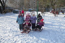 Погода приподносит свои сюрпризы, которым рада детвора. Зима ещё не началась, а дети катают друг друга на санках.