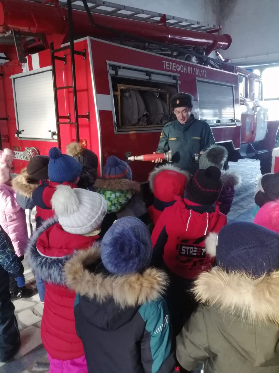 Балалар өчен кызыклы маҗаралар һәрвакыт экскурсияләр булып тора, ә менә янгын частенә бару - ул кызыклы, өйрәнелмәгән дөньяга сәяхәт тә. Янгын часте территориясендә Балаларга караул бүлмәсен, ял итү һәм ашау бүлмәләрен, дежур диспетчерлык хезмәтен һәм уку сыйныфларын күрсәттеләр. Балалар техника өчен бокслар карап, бик күп кызыклы нәрсәләр белделәр. Янгын сүндерүчеләр сугыш киемнәрен, янгын-коткару инвентарьларын күрсәттеләр, янгын каскасын сынап карарга рөхсәт иттеләр. 42-Урыссу янгын - коткару бүлегендә С. А. Тарасенко һәм И. А. Зарипов кызыклы һәм мавыктыргыч экскурсия үткәрделәр. Соңыннан балаларга янгын чыккан очракта үзеңне ничек тотарга һәм аның килеп чыгуына юл куймаска кирәклеге турында сөйләделәр.