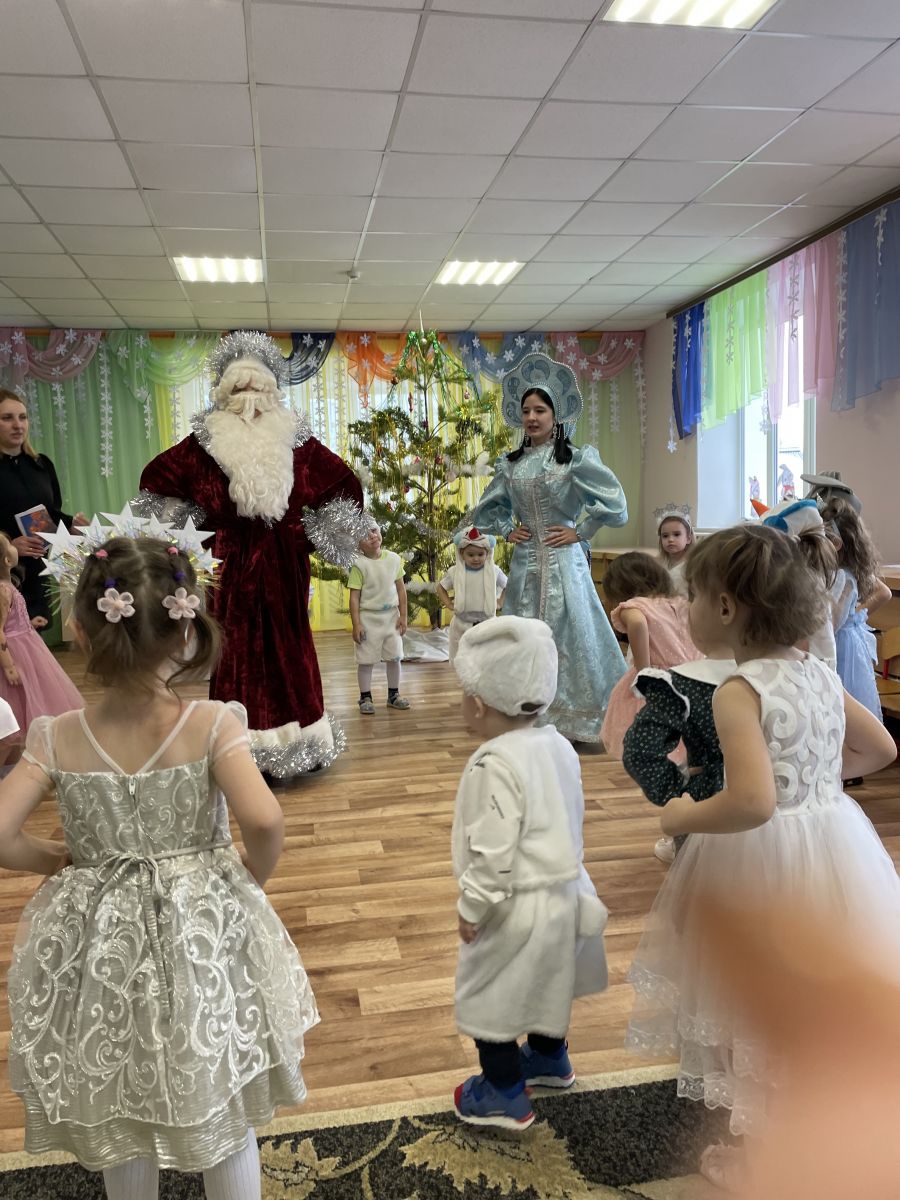 Новый год – самый любимый, добрый, сказочный праздник, который ждут в каждом доме, в каждой семье. Но никто так искренне не ждёт Новогоднего чуда, волшебных превращений и приключений, как наши дети. С самого начала представления сказочные герои увлекли детей в волшебный мир сказки. Дети смогли окунуться в праздничную атмосферу приключений, поучаствовать в интересных конкурсах. С появлением Деда Мороза начался настоящий праздник с песнями и танцами, хороводами вокруг ёлки. После представления дети читали стихи Деду Морозу и Снегурочке, фотографировались с персонажами, получали новогодние подарки. Во время новогоднего представления царила атмосфера праздника, волшебства, чувствовался позитивный эмоциональный настрой воспитанников и их родителей.