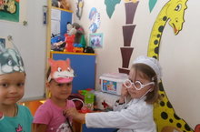 В этот день дети наши воспитанники под руководством педагогов побывали на экскурсии "В гостях у доктора Айболита" в медицинском кабинете, где познакомились с работой старшей медицинской сестры. Также в группах прошли интересные беседы: "Если что у вас болит, вам поможет Айболит!", "Живые витамины", "Полезная и вредная еда". Игровые мероприятия о полезной и вредной пище расширили представления детей о том, как правильно нужно питаться. Кроме этого, воспитанники приняли участие в игре-драматизации по сказке К.И. Чуковского "Доктор Айболит" и подвижных играх: "Помоги Айболиту собрать медицинский чемоданчик", "Позови на помощь". Завершилось мероприятие просмотром мультфильма "Королева зубная щетка" и рисованием любимых героев из сказки про Доктора Айболита!