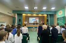 Утро понедельника в гимназии традиционно началось с церемонии выноса Флага Российской Федерации и флага Республики Татарстан и исполнения Гимнов Российской Федерации и Республики Татарстан.