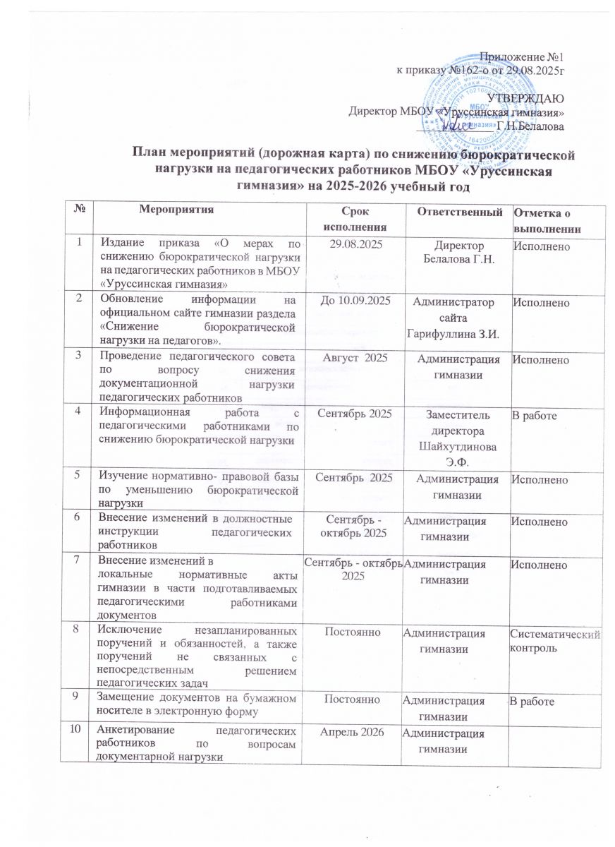 Дорожная карта по снижению бюрократической нагрузки на педагогических работников