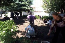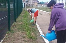 14 день лагеря труда и отдыха "ПЧЕЛКА". Ребята занимались полоивом цветов и убокой прилегающей территории школы по улице Пушкина