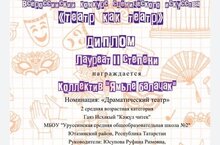 Театральный коллектив школы "Ямьле балачак!"стал лауреатом 2 степени во Всероссийском конкурсе сценического искусства "Театр как театр".