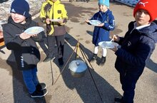 В начале праздника было рассказано о появлении праздника.Тем временем «прилетели» два черных ворона. Они сообщили детям, что пришла весна. В конце праздника все отведали вкусную кашу. -
