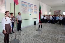 В школе прошла торжественная церемония поднятия государственных флагов Российской Федерации и Республики Татарстан.