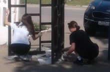 Трудовой лагерь, занимались поливкой цветов и покраской въездных ворот и калитки школы.