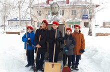 Трудовой десант по очистке памятника А.С.Пушкина от снега 07.02.2022