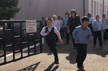 В школе прошла учебная комплексная эвакуация. Как только сработала сигнализация, коллектив школы и учащиеся организованно покинули «горящее» здание. Все эвакуировались за положенное нормативное время. -