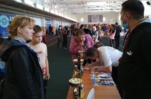 Обучающиеся 5б с родителями и классным руководителем посетили мероприятие "Приведи ребенка в спорт". Ребята посмотрели как проходят секции, награды, познакомились с тренерами и списались на секции