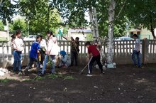 Трудовой лагерь провел уборку школьного двора