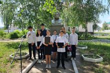 Лагерь труда и отдыха ко Дню Рождению А.С. Пушкина посетили сквер, очистили и подмели территорию от веток и мусора вокруг мемориала.