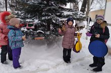 В пришкольном лагере прошла акция "Покормите птиц зимой". Ребята провели подсчет птиц - сегодня на кормушки прилетели 2 синички и 5 воробьев