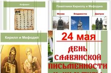 22 мая в 3 Б классе был проведён урок, посвящённый дню славянской письменности и культуры " Откуда пошла славянская письменность ". Учащиеся познакомились с историей возникновения славянской письменности и её основателями, узнали путь развития книгопечатания. Данный урок способствовал воспитанию у подрастающего поколения чувства патриотизма, приверженности высоким духовным идеалам, уважению и любви к культуре русского народа.