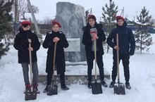 Работа юнармейского отряда по очистке памятника ликвидаторам ЧАЭС