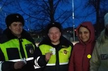 Родители 1 А класса совместно с сотрудниками ГИБДД приняли участие в акции" Стань заметней" Вручали ангелочки водителям с детьми 5 класса