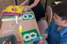 В 1 А классе прошел классный час к 8 марта. Дети рассказали стихи о мамах. Приготовление овили поделки для мам и бабушек.