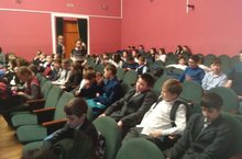 Учащиеся 4-6 классов смотрели фильм "Зимнее утро".Перед началом фильма работники Дома Культуры рассказали о Блокаде Ленинграда