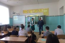 11апреля в 8 классе на классном часу посвященному 100летию образованию комиссариатов. Хусаенов Рустем Нурсаетович рассказал как сегодня работают военкоматы. Ответил на многочисленные вопросы ребят.
