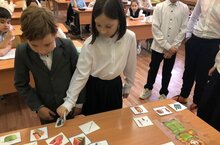 В преддверии этой значимой даты советник директора по воспитанию Габдрахманова А.Э., провела для учащихся 6Б класса настольную игру «История российского герба». Цель игры - найти две одинаковые карточки с изображением герба. После того, как была найдена пара карт, учитель рассказывал краткую информационную справку про каждый герб. -