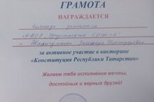 В преддверии этого праздника учитель истории Масалимова Алия Рафаиловна с учащимися школы провела патриотический час «Я –гражданин Татарстана". Во время мероприятия ребята познакомились со структурой Конституции РТ, а так же с основными правами и обязанностями граждан Республики. -