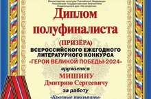 Мишин Дмитрий полуфиналист-призер Всероссийского литературного конкурса «Герои Великой Победы-2024» 25.06.2024
