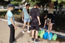 Трудовой пришкольный лагерь продолжил свою работу. Ребята поливали цветы и деревья, высаженные в школьном дворе. Какой лагерь без отдыха, конечно нашлось время и для подвижных игр с мячом и спокойных, как "мафия".