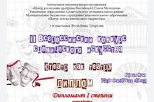 Мәктәбебезнең "Сәхнә остасы" театр коллективы "Театр театр буларак" II Бөтенроссия сәхнә сәнгате конкурсында I дәрәҗә дипломант исемен яулады.