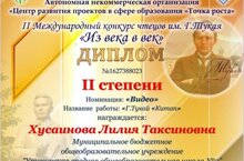 Дипломант 2 степени ll Международного конкурса чтецов им.Г.Тукая "Из века в век" 04.05.2024