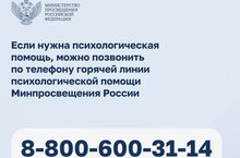 За психологической помощью можно обратиться по телефону горячей линии Минпросвещения России: 8-800-600-31-14