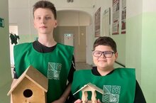 Ребята смастерили кормушки, добавили корм и развесили их на территории школы. На березу во дворе школы ребята повесили скворечник.